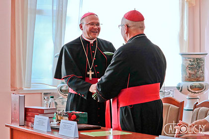 Са словамі прывітання звярнуўся і Мітрапаліт Мінска-Магілёўскі арцыбіскуп Тадэвуш Кандрусевіч, які прадставіў гістарычную спадчыну каталіцкага Касцёла на Магілёўшчыне і пажадаў плённага развіцця Магілёўскаму рэгіёну асабліва ў духоўных каштоўнасцях.