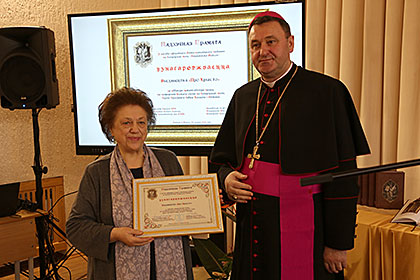 Фінальным акордам сустрэчы стала ўзнагароджанне ганаровымі граматамі Секцыі па перакладзе літургічных тэкстаў і афіцыйных дакументаў Касцёла Камісіі Божага Культу і Дысцыпліны Сакрамэнтаў пры Канферэнцыі Каталіцкіх Біскупаў Беларусі і архідыяцэзіяльнага выдавецтва «Pro Christo», чыя адданая праца зрабіла магчымым выданне «Пяцікніжжа Майсея» і правядзенне гэтай урачыстай і знакавай падзеі.