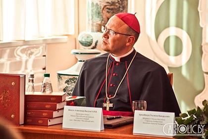 Загадчык сектара па справах рэлігій і нацыянальнасцей пры Магілёўскім аблвыканкаме Сяргей Савенка, нагадваючы гісторыю з’яўляення рыма-каталіцкага выдання Новага Запавету на беларускай мове, падзякаваў за клопат і ўклад у развіццё культуры беларускага народа і беларускай мовы.