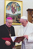 Беларускія іерархі падарылі Пантыфіку экземпляр перакладу Новага Запавету на беларускую мову 1 лютага 2018 года ў Ватыкане прайшла сустрэча папы Францішка з каталіцкімі біскупамі Беларусі, якія знаходзяцца ў Апостальскай сталіцы з візітам Ad limina. Беларускія іерархі падарылі Пантыфіку экземпляр перакладу Новага Запавету на беларускую мову і фота біскупаў з Пленарнага пасяджэння Рады Канферэнцый Біскупаў Еўропы на фоне мінскай катэдры. |