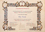 ў мастацка-тэхнічным афармленні і паліграфічным выкананні Д Ы П Л О М ДРУГОЙ СТУПЕНІ Выдавецтву “Про Хрысто” за выданне альбома “FIDEI TESTIS”. “Сведка веры” XLV Рэспубліканскі конкурс «Мастацтва кнігі» 2005 г. |